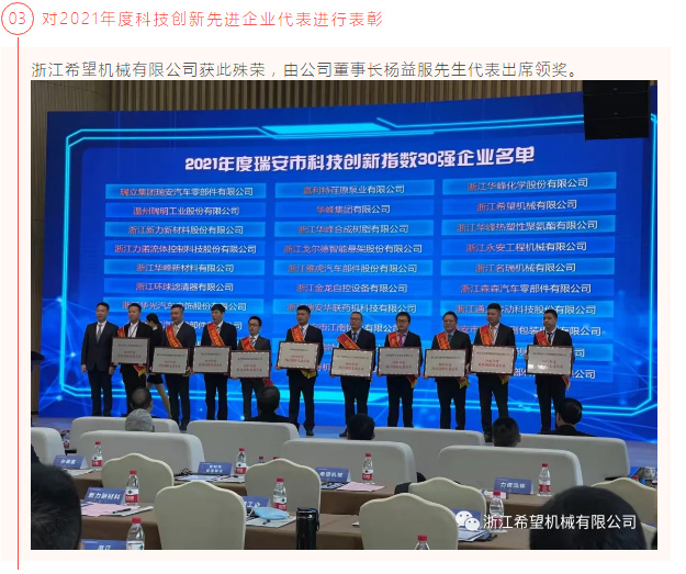 浙江希望機(jī)械有限公司參與2021年世界青年科學(xué)家峰會(huì)瑞安云江科創(chuàng)大會(huì)暨長(zhǎng)三角汽車部件產(chǎn)業(yè)創(chuàng)新論壇